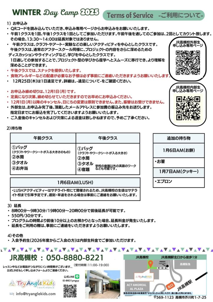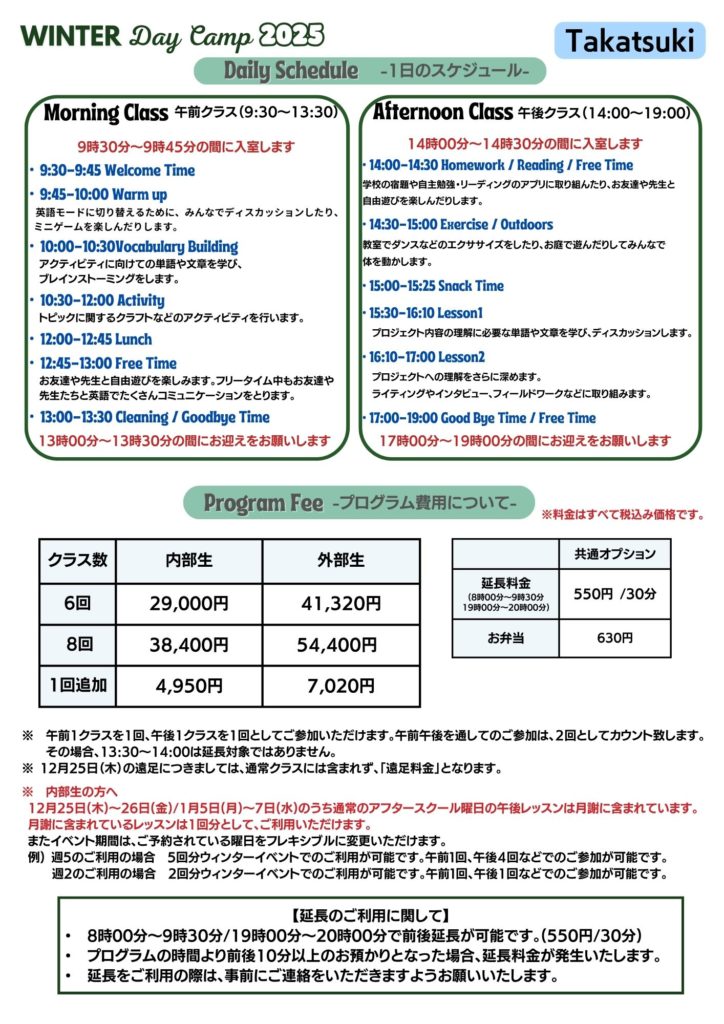 【JR高槻校 12/25〜1/7】Winter Day Camp・ウィンタースクール開催!冬休みは国内留学しよう!